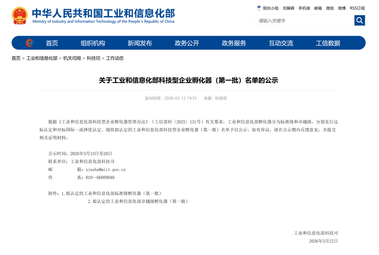2026年3月12日,中华人民共和国工业和信息化部依据《工业和信息化部科技型企业孵化器管理办法》(工信部科〔2025〕131号)相关要求,公示拟认定的工业和信息化部科技型企业孵化器(第一批)名单,芜湖高新技术创业服务中心成功入选。此次入选既是对中心孵化实力、服务效能与产业赋能能力的权威肯定,也是孵化行业迈向高质量发展新形势下,中心全面转型升级的重要里程碑。