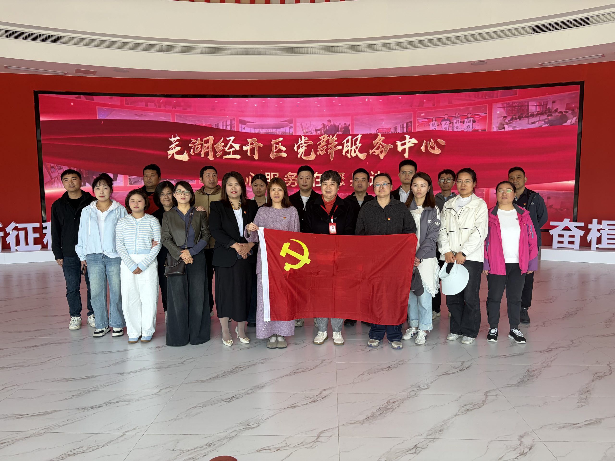 外观形似一艘“红船”的党群服务中心是芜湖经开区非公企业党建工作的坚实阵地。在讲解员的带领下,党员们依次参观了“银湖学堂”、红色议事厅、党务实训室、组织生活室、共享直播室、党建工作指导站、红领书记工作室等功能模块,了解到经开区以高质量党建引领高质量发展取得的优异成果,纷纷表示要以此次参观学习为契机,结合自身实际,借鉴党建工作的先进做法,把党的建设融入公司业务发展全过程。